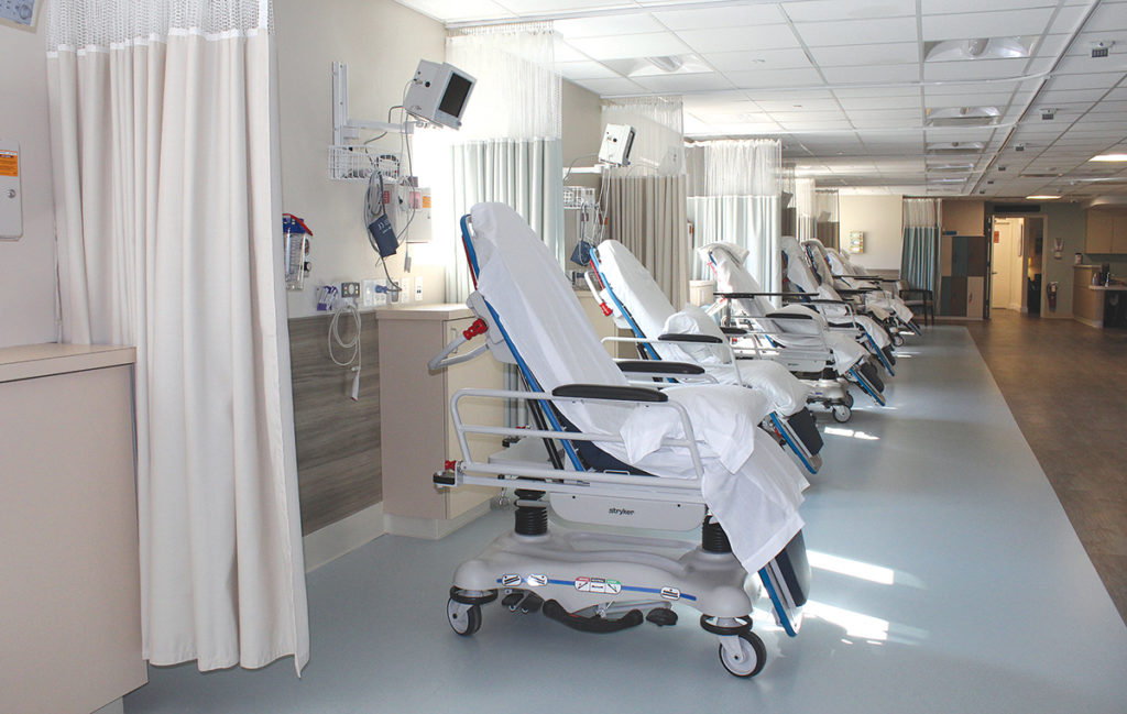 The pre-and post-op areas are large and bright and each patient’s vital signs are monitored. Each area has features including chairs that convert to stretchers for many of the procedures — such as the colonoscopies and endoscopies Dr. Mehta performs— to avoid having to move patients from beds to stretchers to operating tables. But there’s also one stretcher specially designed for patients with other problems who may require X-rays. The design enables the patient to be X-rayed through the stretcher.