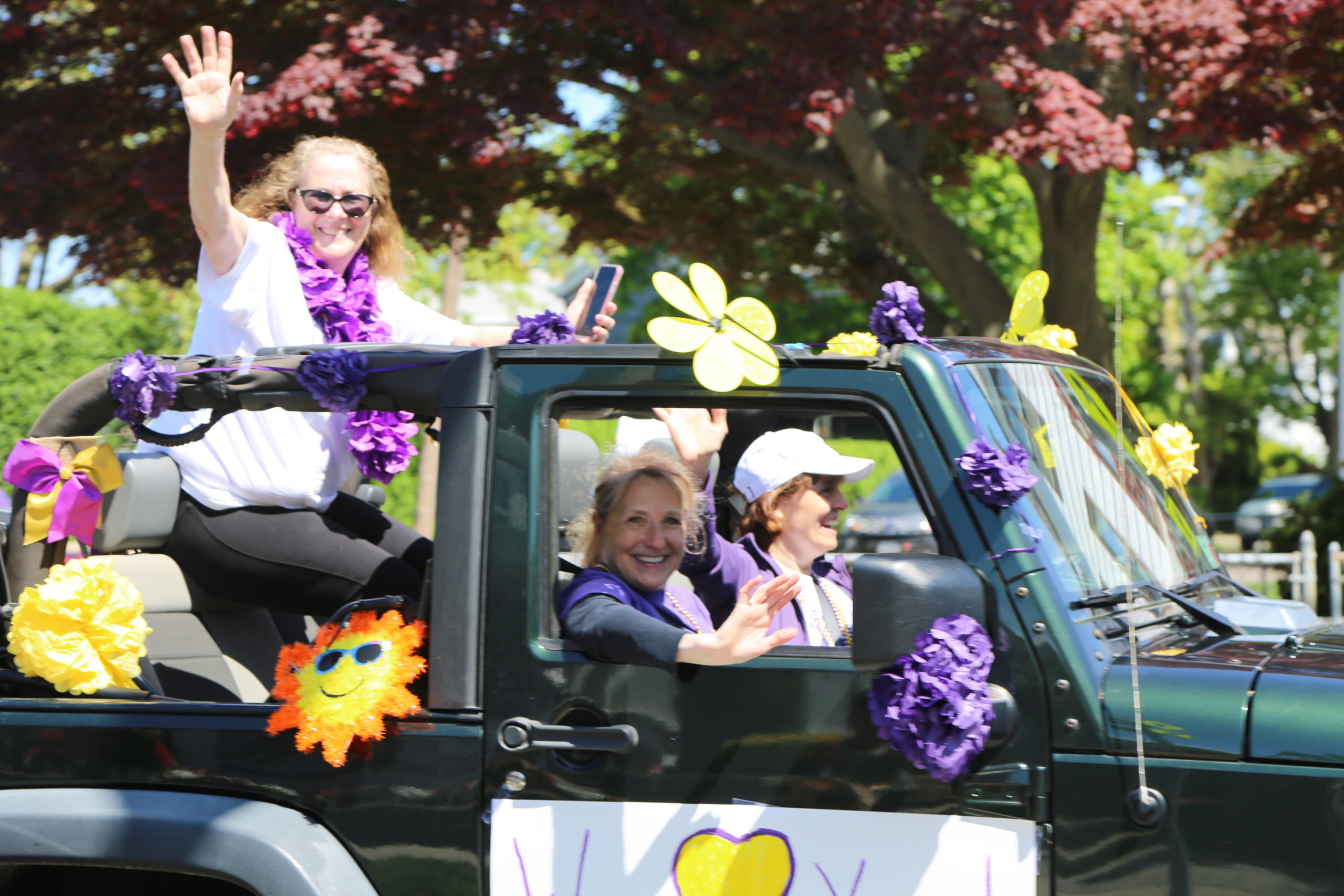 Porter purple and gold was on full display in Greenport Wednesday morning as a drive-by parade of teachers wound its way through village streets.