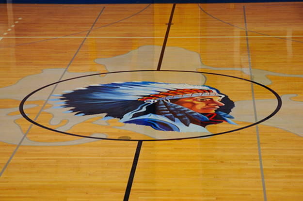 The issue has drawn strong reactions on social media, some serious, some derogatory. It’s not just the name, but also centers around the image of the Indian portrayed on the gymnasium floor, with some saying it has no relation to the eastern woodlands Indian tribes, but looks more like a Great Plains Indian.