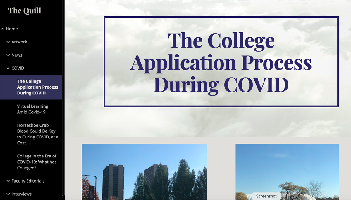 Not surprisingly, the website has been covering the major story of 2020: COVID-19’s attack on humanity. As part of its coronavirus coverage, The Quill has run stories about how COVID-19 has affected the college application process, brought about intramural sports, examined how horseshoe crab blood is being considered for use for a vaccine and run a piece about what it’s like to be a fully remote student.