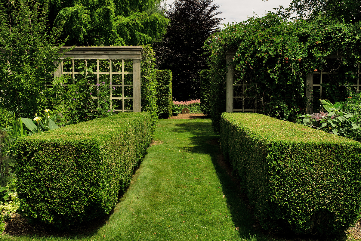 Year after year and acre by acre, the garden expanded. It now covers four of the property’s 14 acres and features an array of different styles and influences. Winding your way through the property, you encounter lush perennial and mixed borders, container plantings that are changed out seasonally and areas that evoke the spirit of an English rose garden or transport you to a tropical landscape.