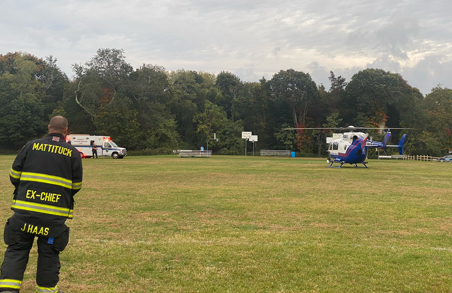 One person was airlifted as a Suffolk police medevac landed at the Mattituck Park District fields on Aldrich Lane where youth soccer practice was briefly delayed.