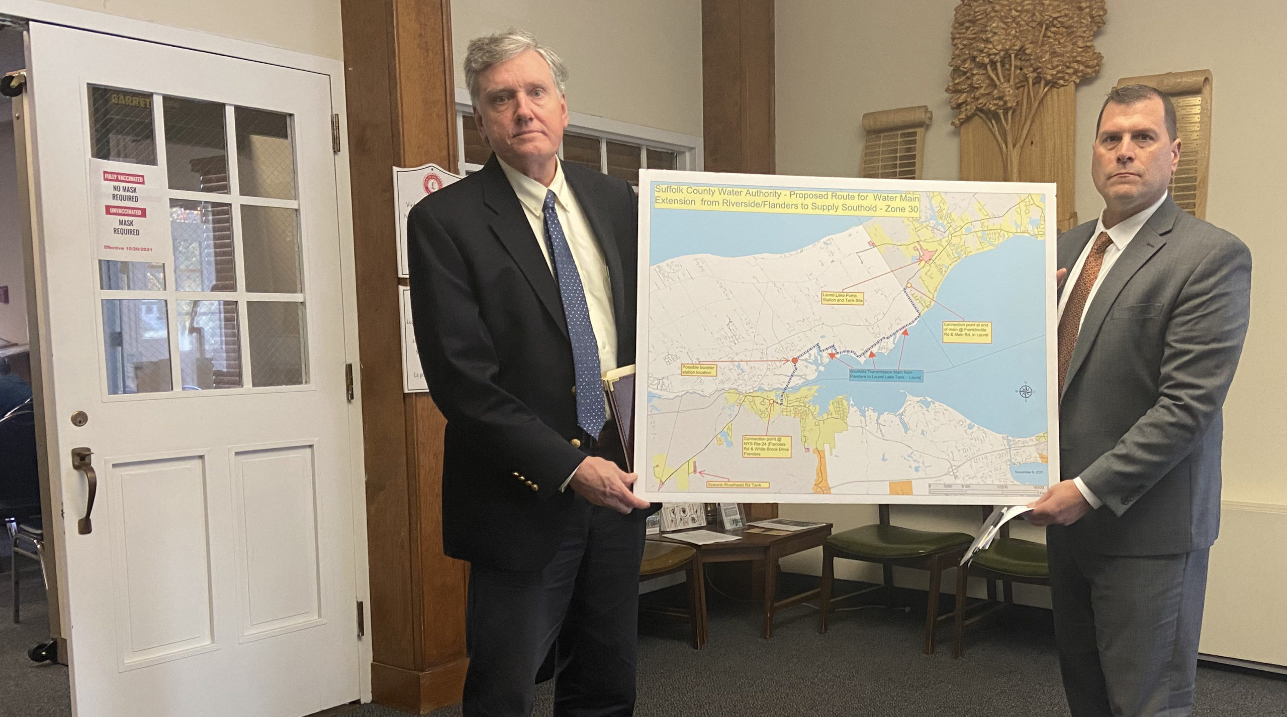 The water main at Flanders Road and White Brook Drive in Flanders would be connected to the existing water main at Franklinville and Main roads in Laurel. The project is expected to cost approximately $27.5 million.