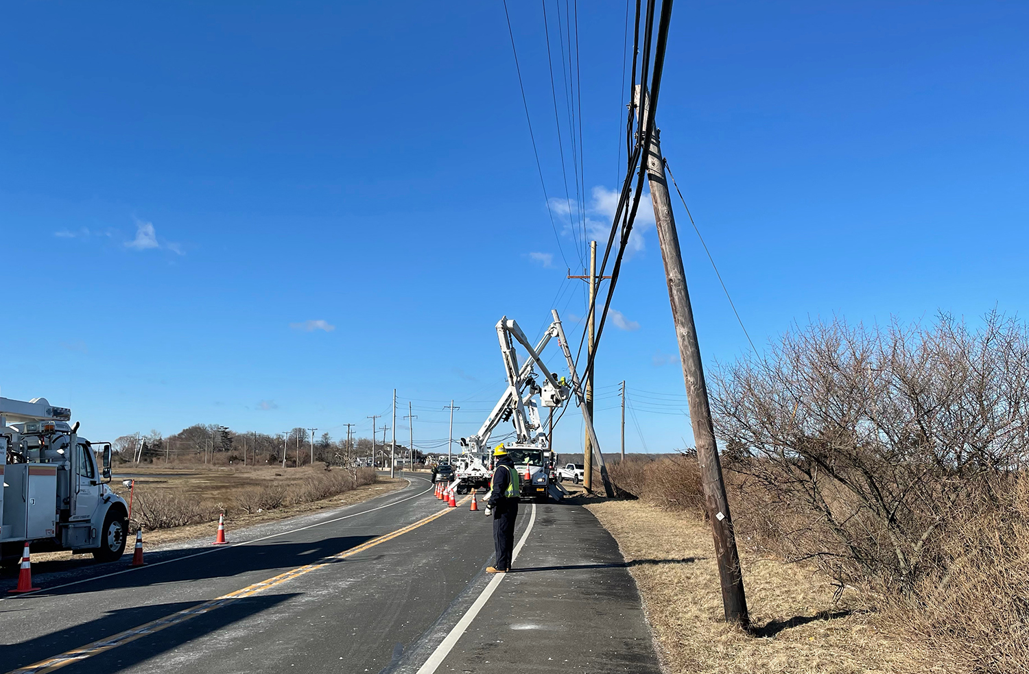 The chief said Orient retained power as crews fixed the downed poles and the PSEG Outage map Sunday morning showed no outages in the area.