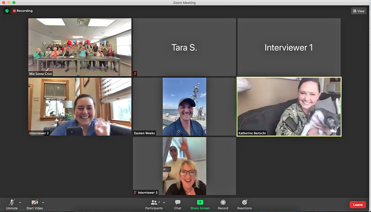 The couple, both of whom are lieutenants in the U.S. Navy, logged into a Zoom meeting and gave each other a wave through their screens, thinking they were in for a second round of interviews for the giveaway. Ms. Bertschi, a Surface Warfare Officer, is the Basic Division Officer Instructor and Department Head at the Mariner Skills Training Center Pacific in San Diego and Mr. Weeks is an operations officer on the USS Mason based in Norfolk, Virginia, where he is responsible for the management of almost 100 sailors.