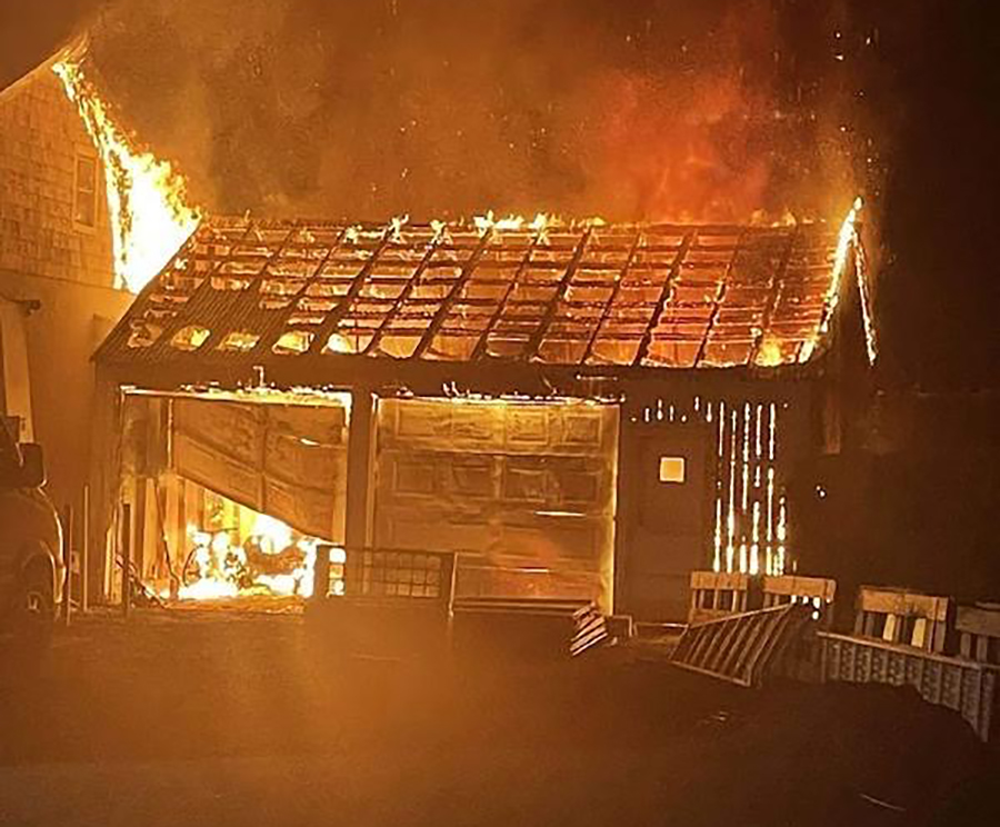 The fire at a nursery barn at 6900 Wickham Avenue in Mattituck was reported shortly before 1 a.m. Firefighters arrived on scene to find a fully engulfed garage and adjacent barn at the property.